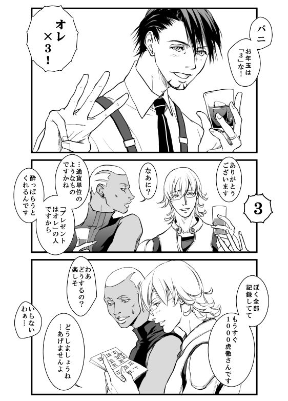 >>目次に戻る 【 お年玉 】 正月につき。 P1 2016.01.20 >>目次に戻る 虎徹さんは、「オレ」はただ感謝の単位だと思っていると思います。 まさか何らかの形をとることになるなんて、露ほども思っていないはず。キケン。